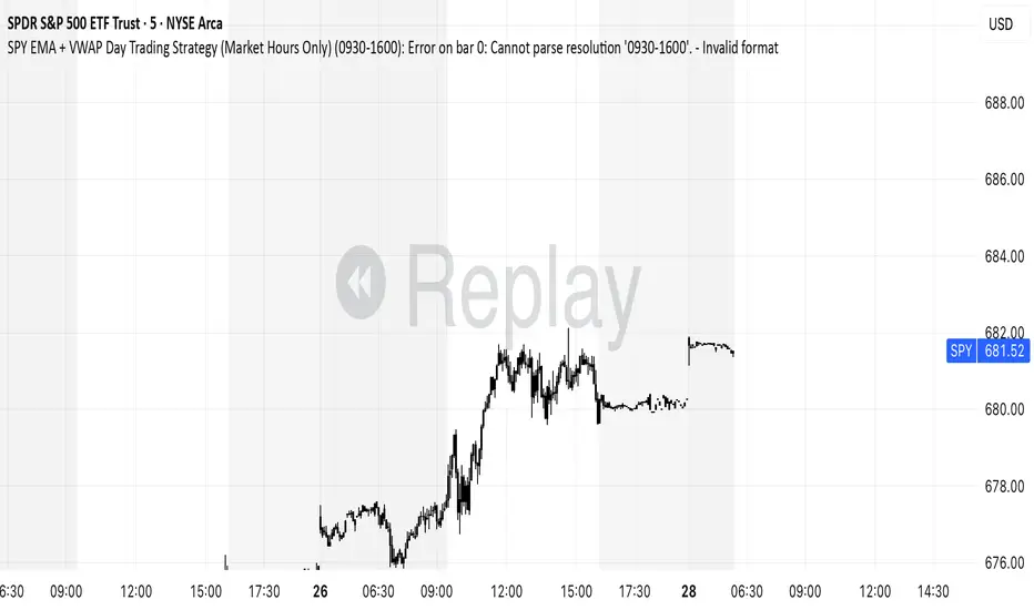 SPY EMA + VWAP Day Trading Strategy (Market Hours Only)