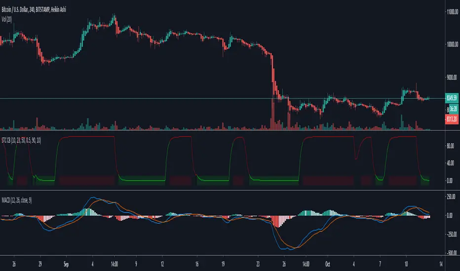 The Schaff Trend Cycle is a method, developed by Doug Schaff and based on the concept that trends also have repeating high and low patterns, or cycles. This is a modified MACD line, run through a modified stochastic algorithm and smoothed with Wilders’ smoothing in order to estimate the final Schaff Trend Cycle (STC) indicator. Its purpose is to identify the direction, in which a trend cycle is moving and possible peaks and bottoms within this cycle.
