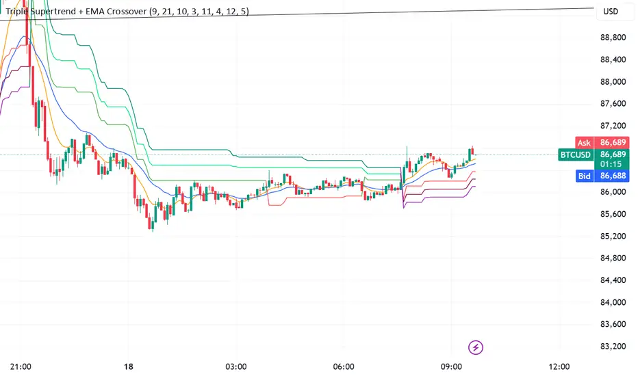 Customized 3 supertrend and EMA crossover which is helpful for identification of the trend.