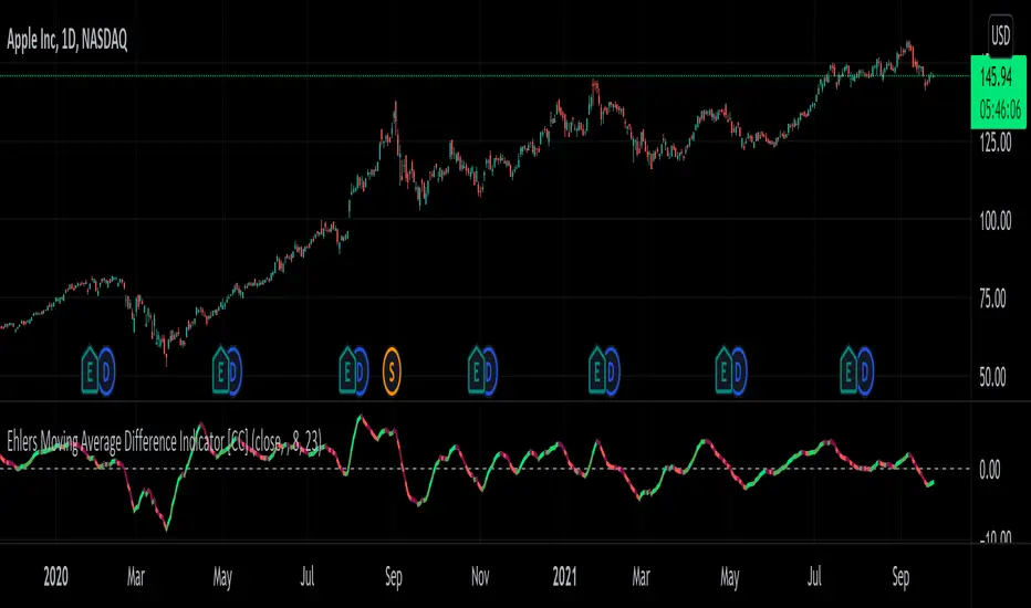 Updated Ehlers Moving Average Difference Indicator [CC]