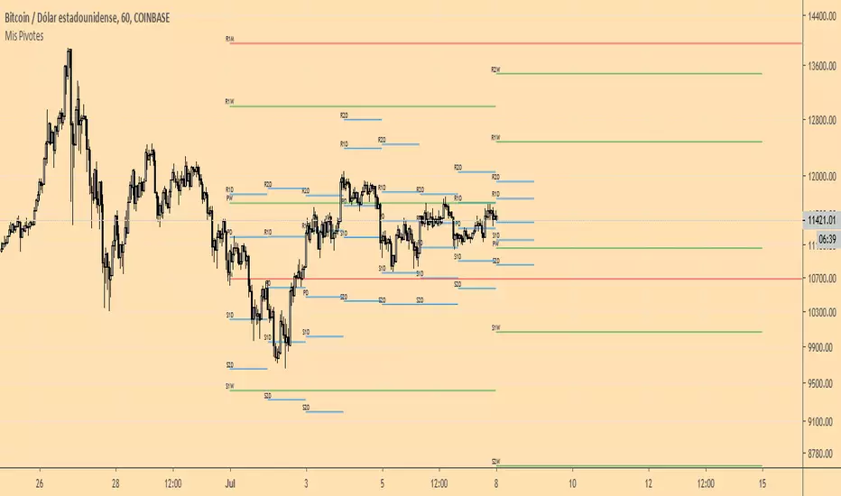 Puntos Pivote tradicionales diario, semanal y mensual.