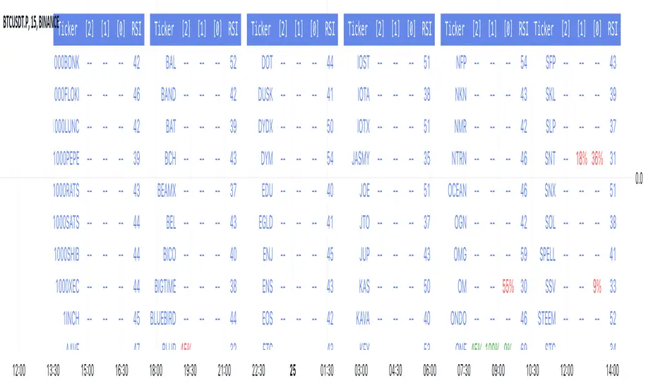 This screener allow you to watch up to 240 any tickers you need to check RSI overbought and oversold using multiple periods, including the percentage of RSIs of different periods being overbought/oversold, as well as the average between these multiple RSIs.