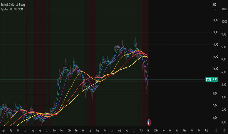 AlphaRank MA Lens is a clean, open-source moving-average overlay that turns price action into an easy-to-read trend map. It focuses on structure and context only — no signals, no backtest, no hype — just a clear view of where price sits relative to key moving averages.