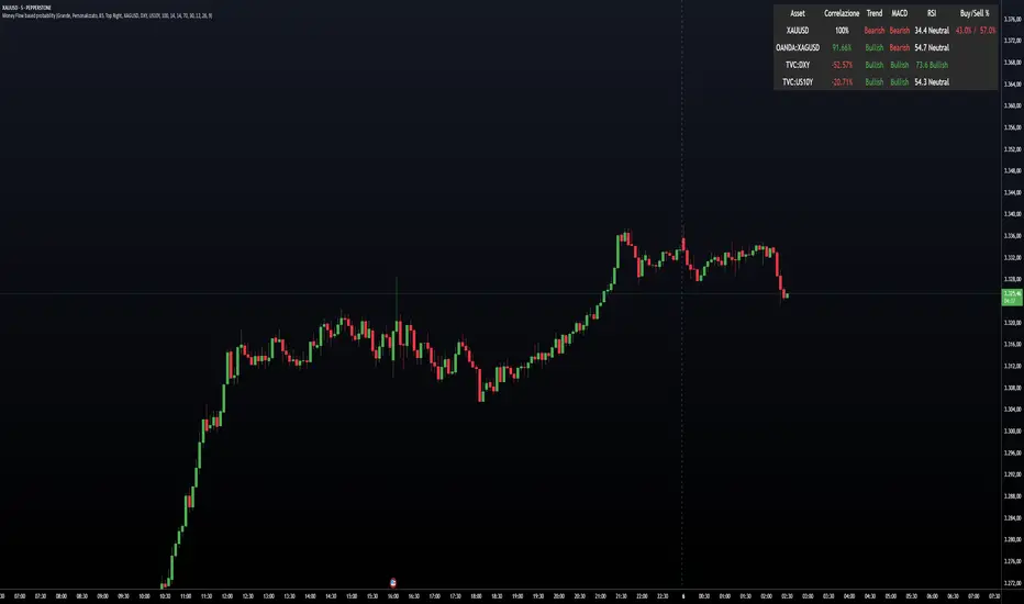 This indicator provides a comprehensive correlation and momentum analysis between your main asset and up to three selected correlated assets. It combines correlation, trend, momentum, and overbought/oversold signals into a single, easy-to-read table directly on your chart.