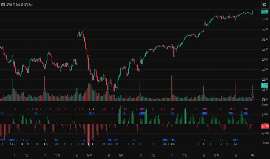 Show who’s really in control (buyers vs sellers) and give timed entries when the combined flow flips through the zero line with optional “pro filters” turned on.