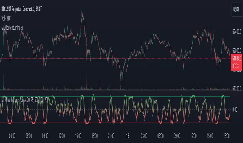 Building upon the innovative foundations laid by Zeiierman's Machine Learning Momentum Index (MLMI), this variation introduces a series of refinements and new features aimed at bolstering the model's predictive accuracy and responsiveness. Licensed under the Creative Commons Attribution-NonCommercial-ShareAlike 4.0 International License (CC BY-NC-SA 4.0), my adaptation seeks to enhance the original by offering a more nuanced approach to momentum-based trading.
