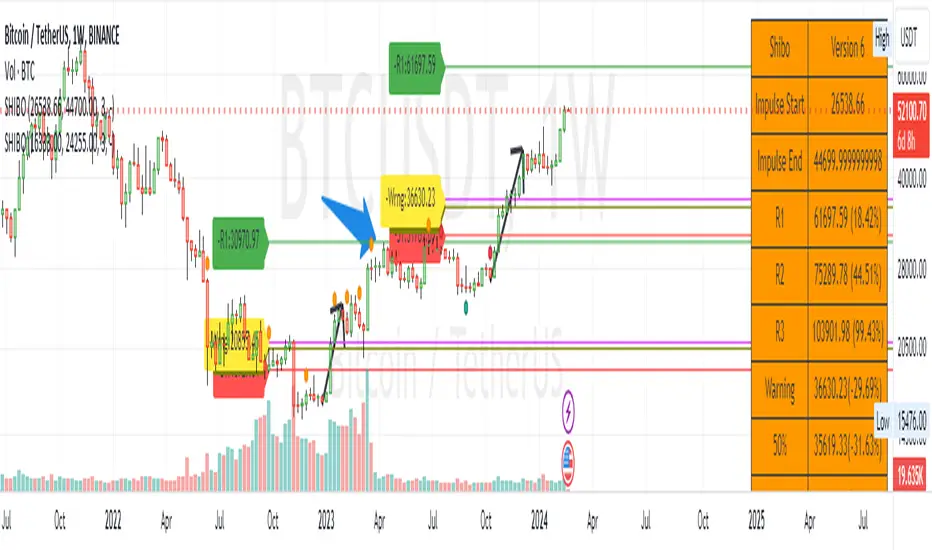 Welcome to SHIBO v6, a revolutionary Fibonacci Impulse Analysis Indicator designed to harness the power of a unique chart pattern. The script employs a reverse Fibonacci methodology to identify powerful impulses that first reach Fibonacci level 0.382, experience a correction, and then continue toward Fibonacci level 1. This description delves into the intricacies of how the script calculates precise price targets based on this distinctive pattern.