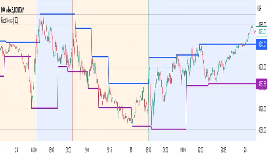 There are built-in and published Pivot Point High Low indicators in Public Library. As far as I see none of them show the breaking candles or the trend.