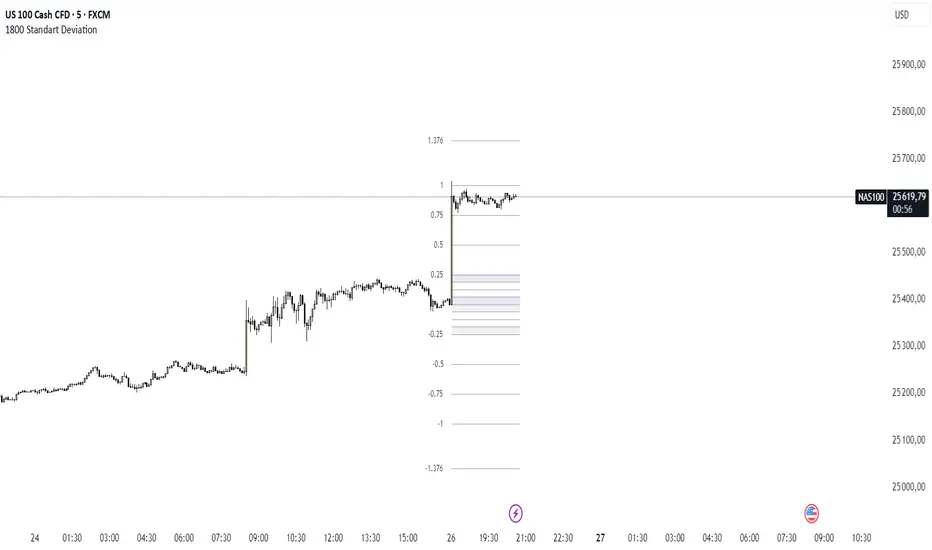 This script automatically plots standard deviation levels calculated from the 18:00 open price (based on your selected timezone). It provides a clear visual framework to analyze market volatility and key price zones around the session open.