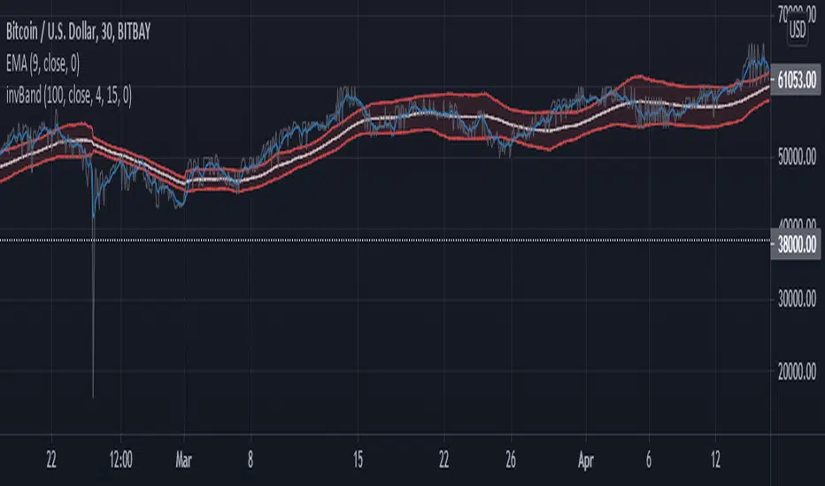 Worked out a reliable way to invert Bol Bands across a wider price range. Still needs some curve fitting via "Length" and "X Offset" settings. In future revisions ill try to automate the fitting based on current price maybe. Until then we will have to manually fit the settings.Release Notes