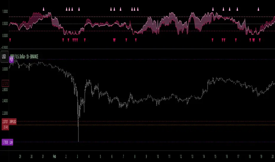 On the 1H chart, a crossover into altseason → check the 15M chart for confirmation. Consider adding the SUPeR TReND 2.718 for confirmation (not shown). If both align, you have trend + flow confluence. If BTCUSD is leading or ribbon is mixed, reduce exposure or wait for confirmation. Further confirmation via Volume breakouts in your specific coin.