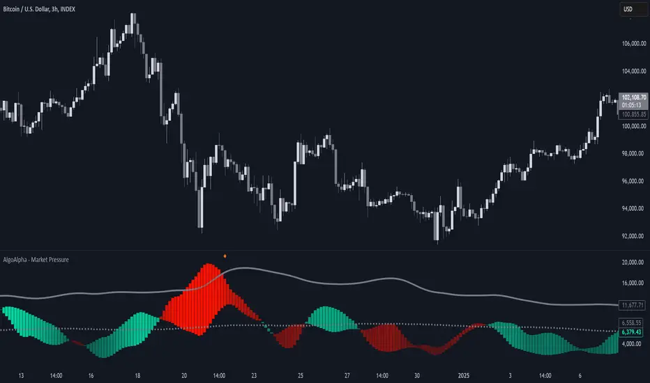 The Market Pressure Index is a cutting-edge trading tool designed to measure and visualize bullish and bearish momentum through a unique blend of volatility analysis and dynamic smoothing techniques. This indicator provides traders with an intuitive understanding of market pressure, making it easier to identify trend shifts, breakout opportunities, and key moments to take profit. Perfect for scalpers and swing traders looking for a strategic edge in volatile markets.