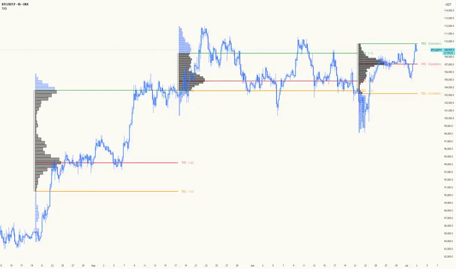 - Configurable Time Blocks: Use any timeframe for TPO counting (30min, 1H, 4H, etc.)
