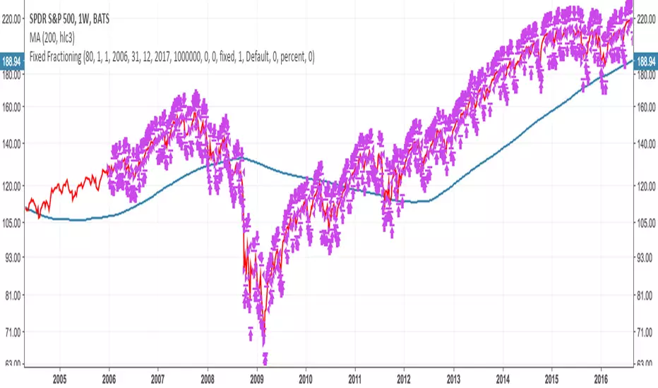Another way (which goes well beyond what this script can do alone) to use the Fixed Fractioning is, if you have two assets that are anticorrelated (has a negative correlation), then investing a certain percentage of your capital in one and another percentage in another. And then each time one goes up (and the other goes down) you sell the one that is going up, and buy the one that is going down to keep the percentages fixed.