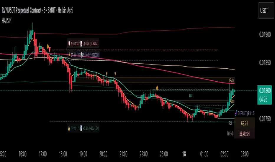 Heikin-Ashi Trend Scalp is an indicator for TradingView, designed to identify short-term trends and entry points based on Heikin-Ashi candles and EMA crossovers.