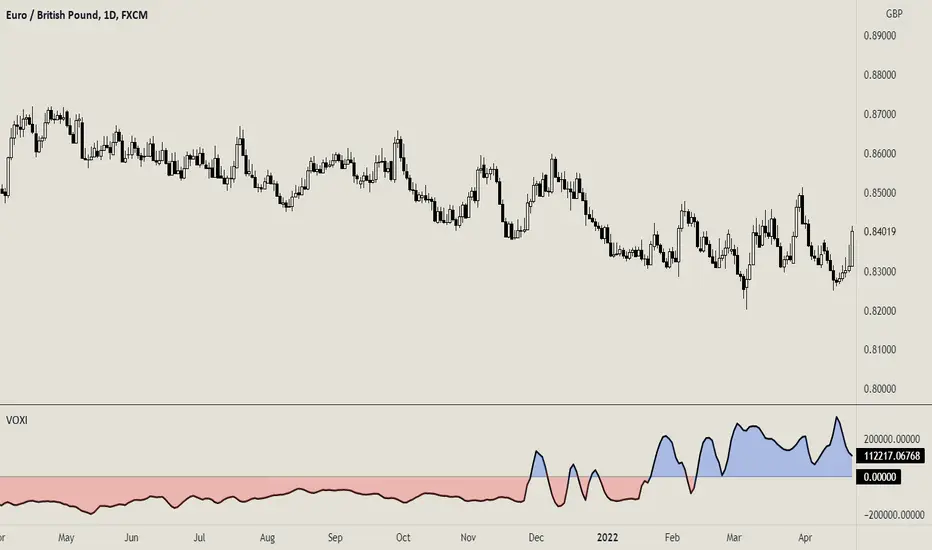 If the VOXI line is above or equal to zero (indicated by the blue color), the current volume is greater than the historical average volume.