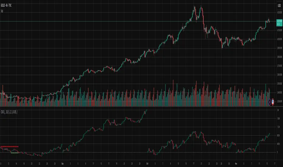 MTF Output: The entire dual-CVD analysis can be run on a higher timeframe (using the Timeframe input), with standard options to handle gaps (Fill Gaps) and prevent repainting (Wait for...).