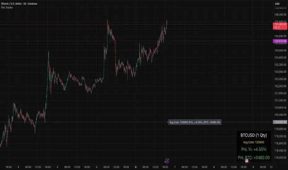 Real-Time PnL Label: A dynamic label attached to the Average Cost line provides an instant summary of your PnL in both percentage and currency for the last visible bar.
