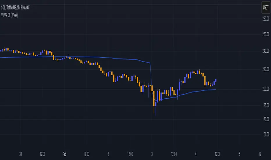 This indicator is a modified VWAP (Volume-Weighted Average Price) that includes additional anchor periods supported by Coinrule. Traditional VWAP is typically anchored to the session open, but this version allows traders to customize the anchor period for better trend analysis and trade execution.Indicator calculation period. This setting specifies the Anchor, i.e. how frequently the VWAP calculation will be reset.