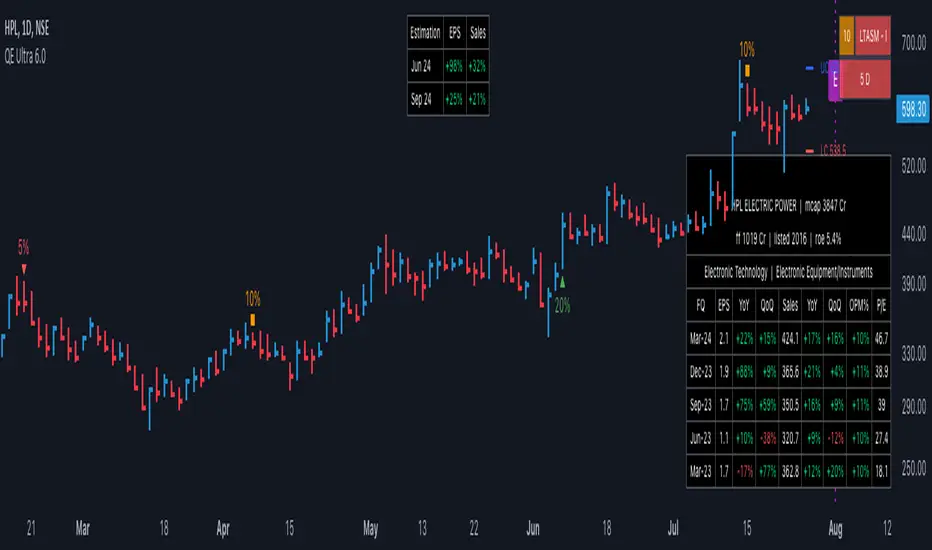 ⦿ This indicator displays all the features of QE Pro and the Price Bands for stocks listed in NSE, India.