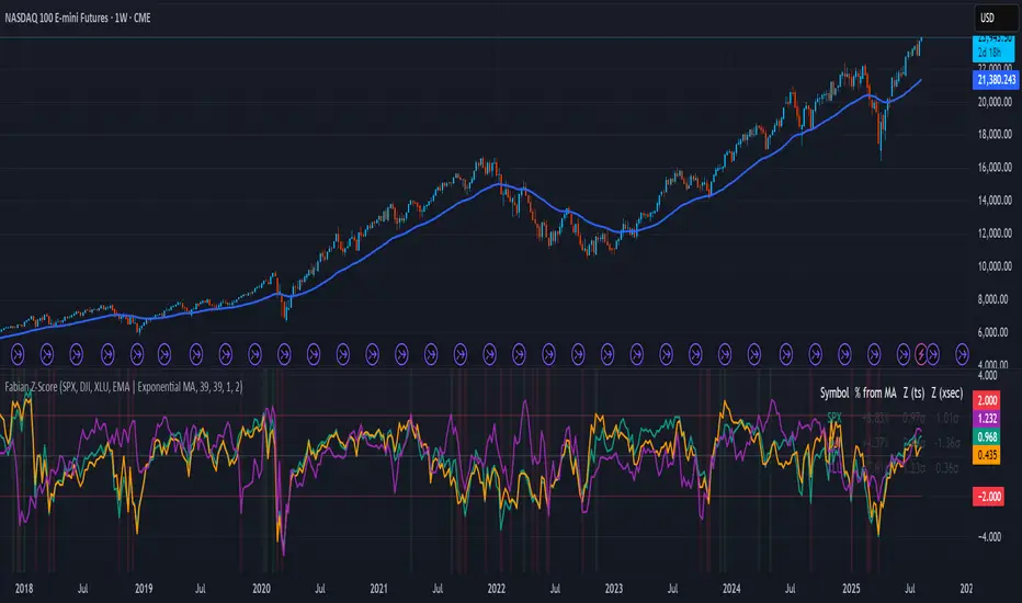 Fabian Z-Score — % Distance & Z-Scores for SPX / DJI / XLU