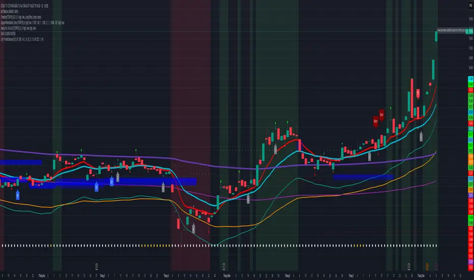 Purpose: One overlay to judge trend, reversal risk, overextension, and volatility squeezes on indexes (built for VNINDEX/VN30, works on any symbol & timeframe).