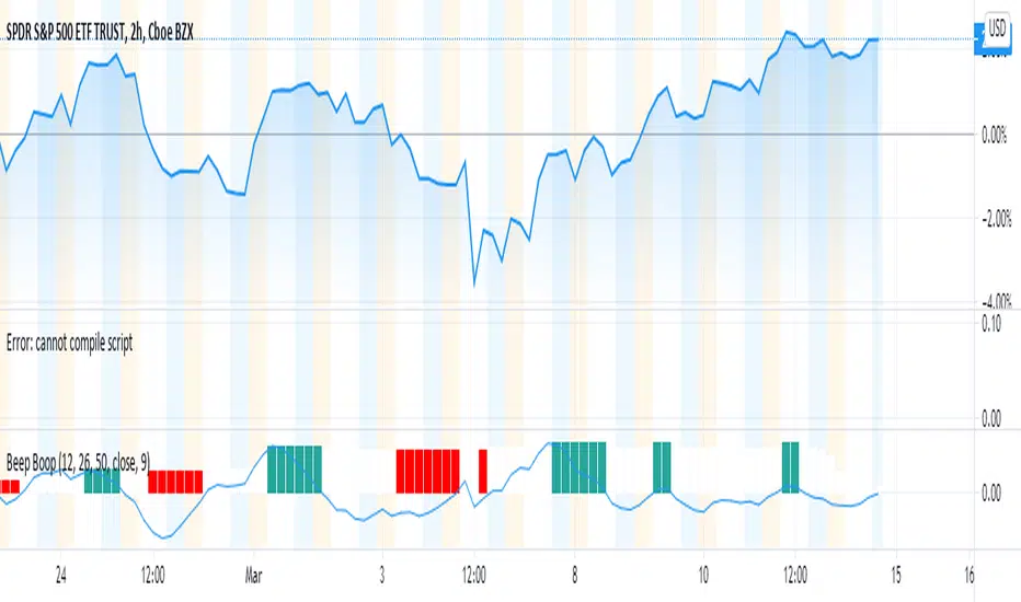 (Modified) Beep Boop Indicator for Trending Markets originally written by Trading Rush.It was originally based on the MACD 12-26 and the 50 bar EMA .