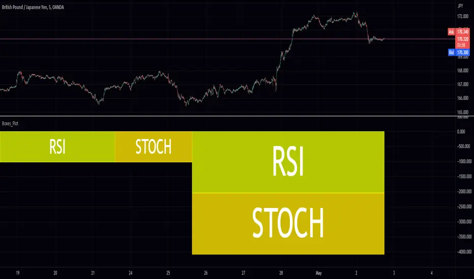 The "Boxes_Plot" library is a powerful and versatile tool for visualizing multiple indicators on a trading chart using colored boxes, commonly known as heatmaps. These heatmaps provide a user-friendly and efficient method for analyzing the performance and trends of various indicators simultaneously. The library can be customized to display multiple charts, adjust the number of rows, and set the appropriate offset for proper spacing. This allows traders to gain insights into the market and make informed decisions.