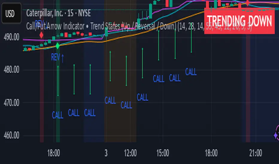 The Call/Put Arrow Indicator is a complete market direction tool that identifies high-probability CALL (bullish) and PUT (bearish) opportunities using a combination of: