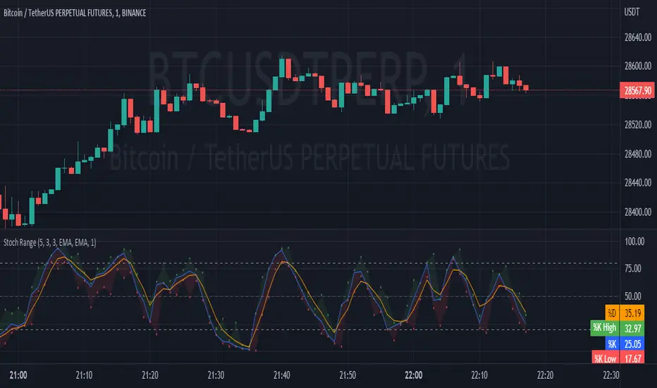 Custom Stochastic Oscillator with range plot. Can be used to better identify overbought/oversold conditions within a single bar. In addition to the default Stochastic: