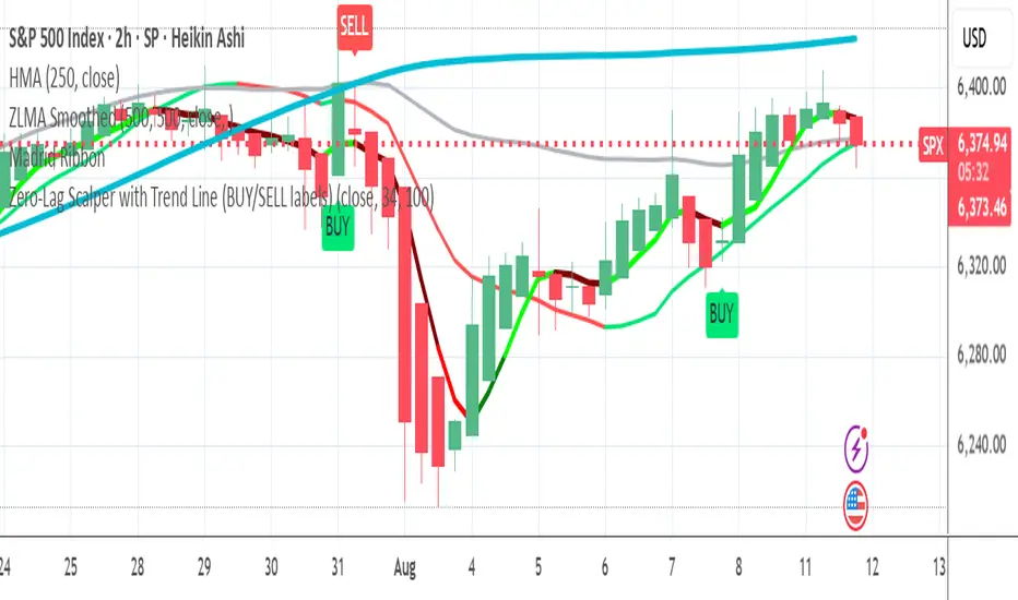 Zero-Lag Scalper with Trend Line (BUY/SELL labels) BY RAH