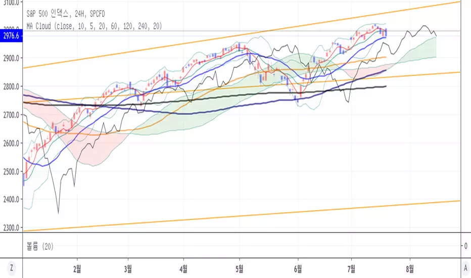 Simple Moving Average ( SMA ) 20 days & 60 days were used to make cloud region( green, red cloud )