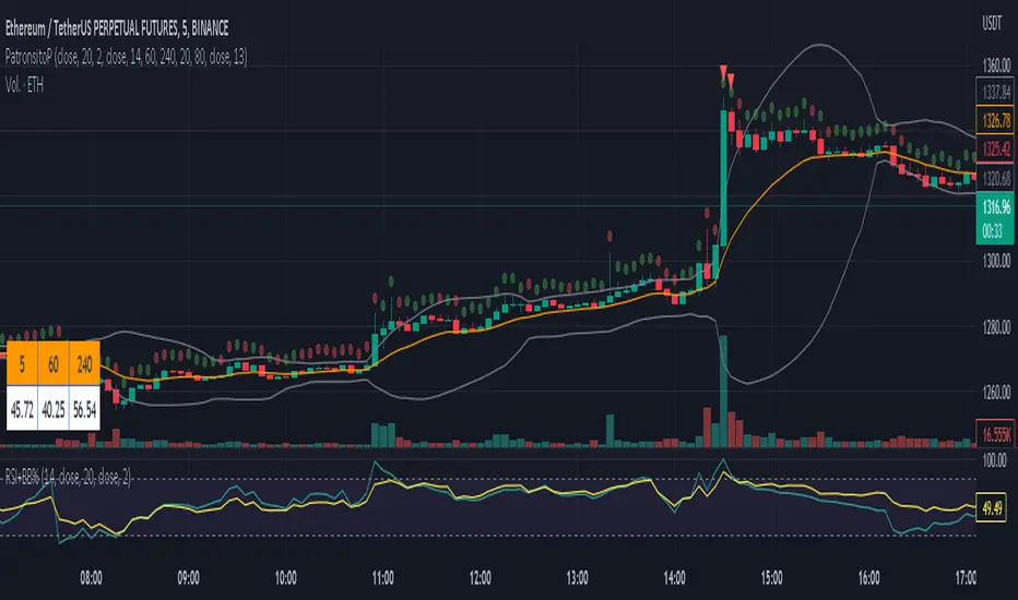 2) Added two extra timefrimes to the RSI table. Since this script is mainly use in 5m, it's handy to have also a view of RSI on higher timeframes. By default you will be able to see RSI values of 1h and 4h but it's customizable