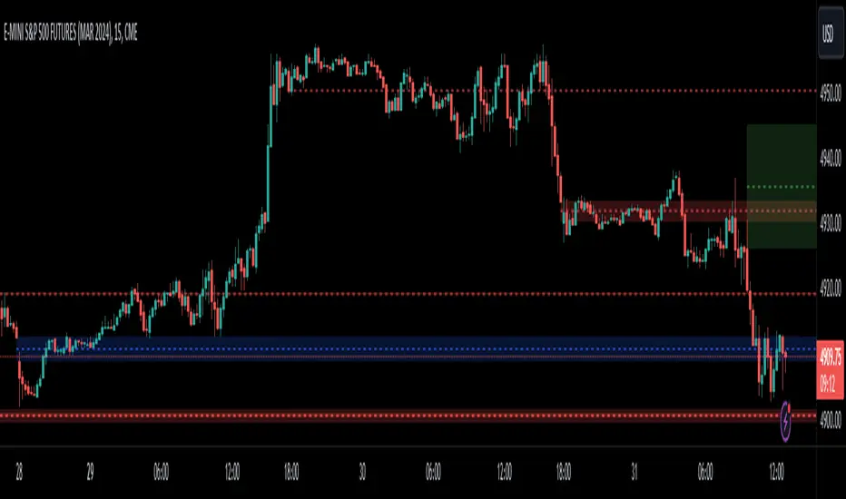 This indicator reveals the new week opening gaps (NWOG) and new day opening gaps (NDOG) as well as the most recent Regular Trading Hour (RTH) Gap. The NWOG is the gap between Friday's closing price and Sunday's opening price. The NDOG is the gap between the opening price and closing price of the previous day. These gaps can be draws on liquidity as well as general reference points of where the market is and has been.