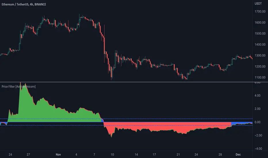 The indicator calculates a fast price filter based on the closing price of the underlying asset. Overall, it is intended to provide a fast, reliable way to detect trend direction and confirm trend strength, using statistical measures of price movements.