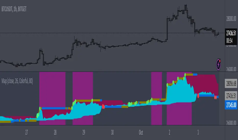 Map - an indicator that shows the highest and lowest points on the price movement road.