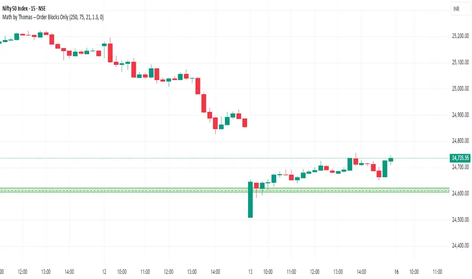 🚀 Math by Thomas Order Blocks is a precision tool for Smart Money Concept (SMC) and price action traders, designed to automatically detect Bullish and Bearish Order Blocks (OBs). It highlights key institutional trading zones where large orders are placed, helping you identify potential reversal and continuation areas.