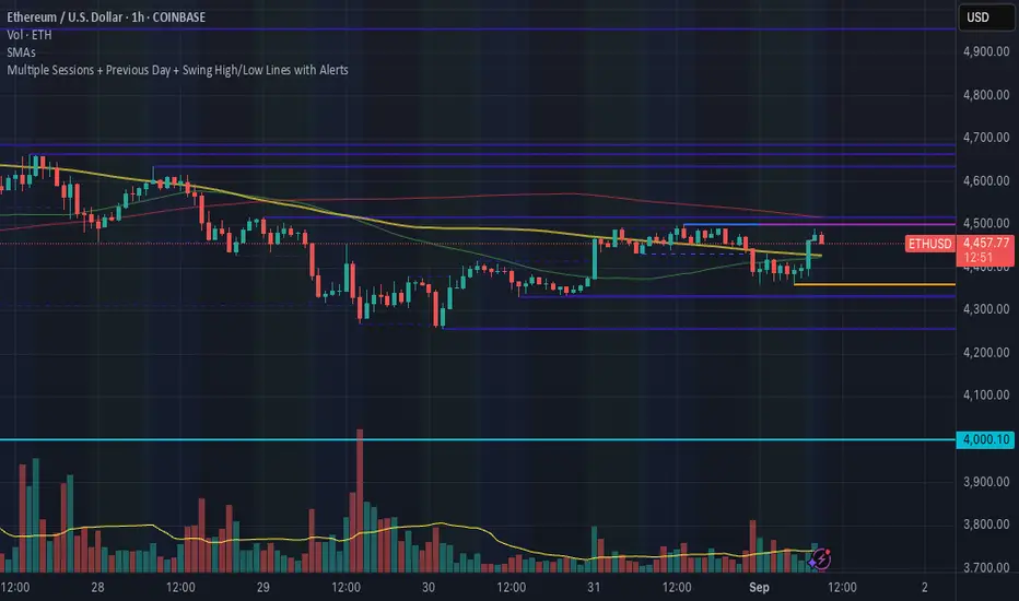 This comprehensive indicator combines session-based trading levels with multi-timeframe swing analysis, for key level identification and alert management.