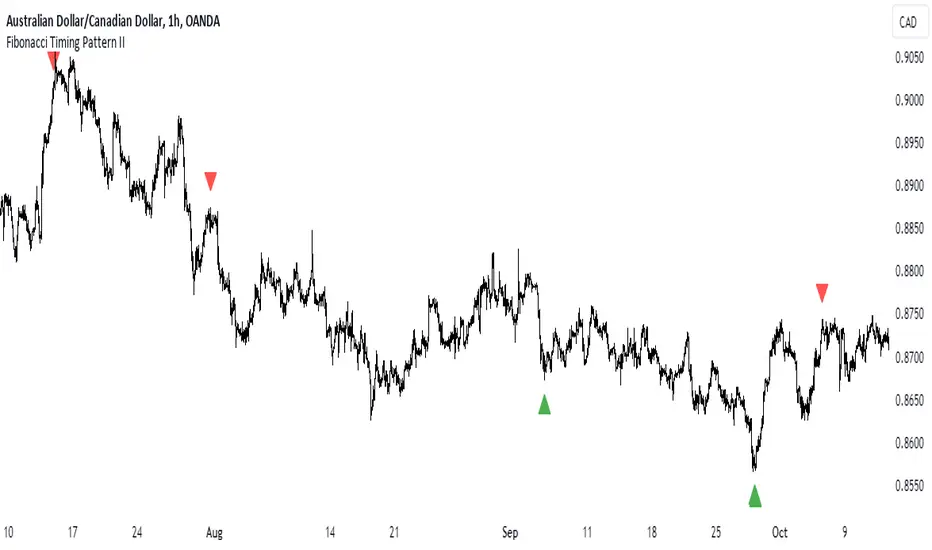 The Fibonacci Timing Pattern II is a price-based counter that seeks to determine medium-term reversals in price action. It is based on the following set of conditions: