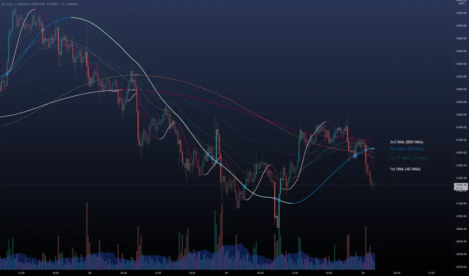 HMA(Hull Moving Average) 라인은 변동성이 심한 시장에 빠르게 반응하며,