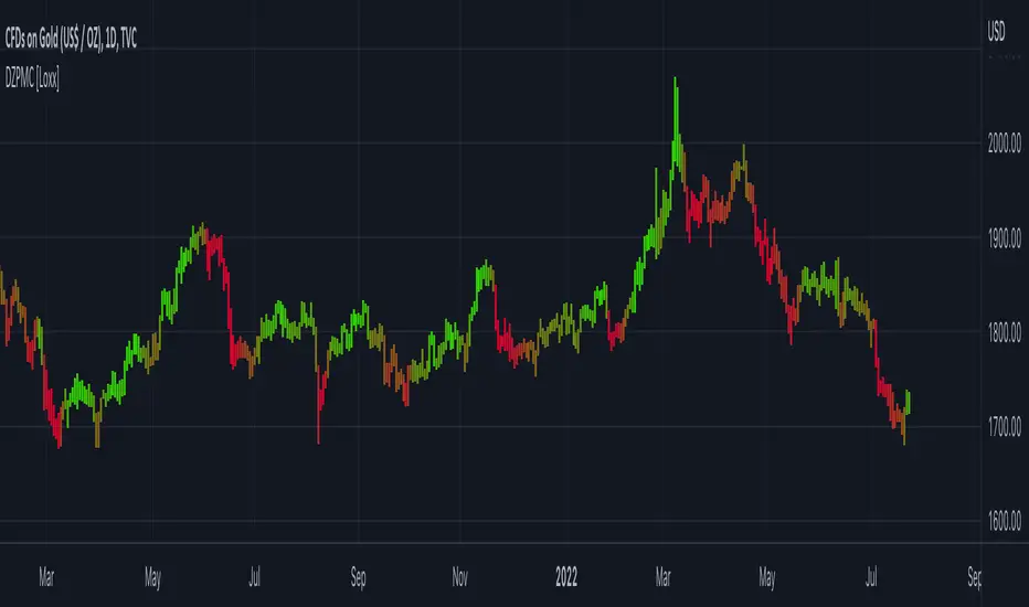Dynamic Zones Polychromatic Momentum Candles [Loxx] is a candle coloring, momentum indicator that uses Jurik Filtering and Dynamic Zones to calculate the monochromatic color between two colors.