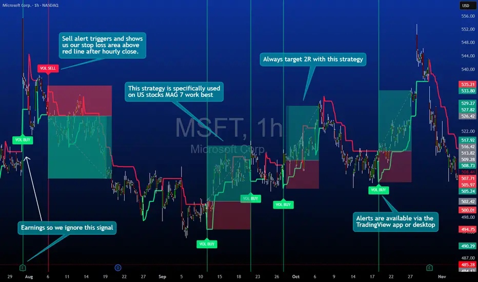 Stop Loss Placement: Place stops beyond the green/red momentum line (not the candle wick). This line represents the validated support/resistance level based on volatility and volume dynamics.