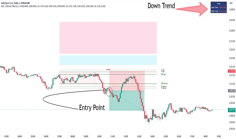 - Precise Trade Timing: Integrating the Kill Zone strategy with the ACD Method enhances precision in trade entries and exits. The ACD Method identifies key points for trading, while the Kill Zone focuses on high-activity periods, together ensuring optimal timing for trades.