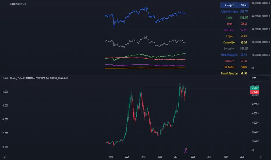 This indicator is designed to provide a comprehensive overview of global market value, going beyond traditional market capitalization metrics. It's ideal for traders, researchers, and anyone interested in gaining a broader understanding of global wealth distribution across various sectors.