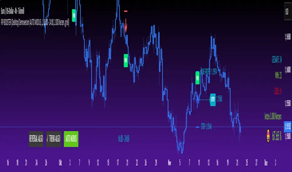 The PIP BOOSTER from underground-traders.com is a very intelligent indicator with integrated win-rate tracking (%), which can be used on all markets and timeframes. Thanks to its two fundamentally different algorithms, the PIP BOOSTER is able to find a profitable setup in over 80% of all charts. The win-rate tracking (%) is highly detailed and can be applied to up to 5,000 candles.