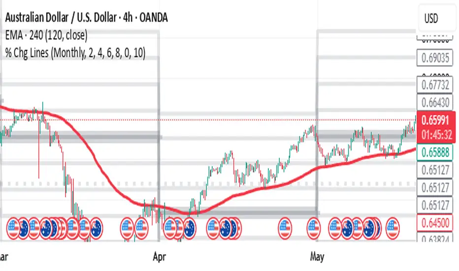 This indicator is designed to visually represent percentage changes from the previous day's close, PREVIOUS WEEKLY CLOSE, PREVIOUS MONTHLY CLOSE
