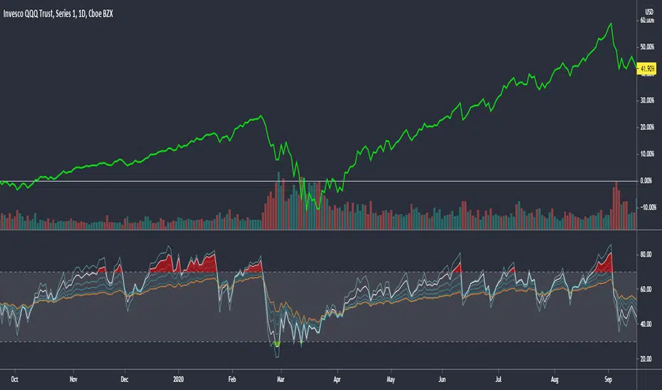 The values of the default RSIs have been updated to give a more useful contextual view of the market. For example: the orange RSI band is calibrated to reach Overbought within the dotcom bubble on QQQ. If you see a stock with an orange RSI in overbought territory, it should indicate a fall, or a long period of flat returns to cool off.Release Notes