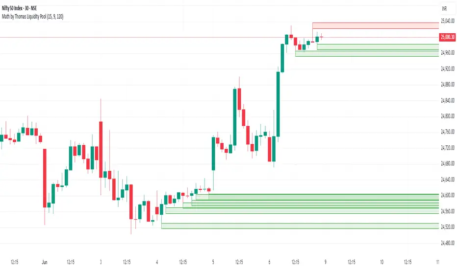 Math by Thomas Liquidity Pool is a TradingView indicator designed to visually identify potential liquidity pools on the chart by detecting areas where price forms clusters of equal highs or equal lows.