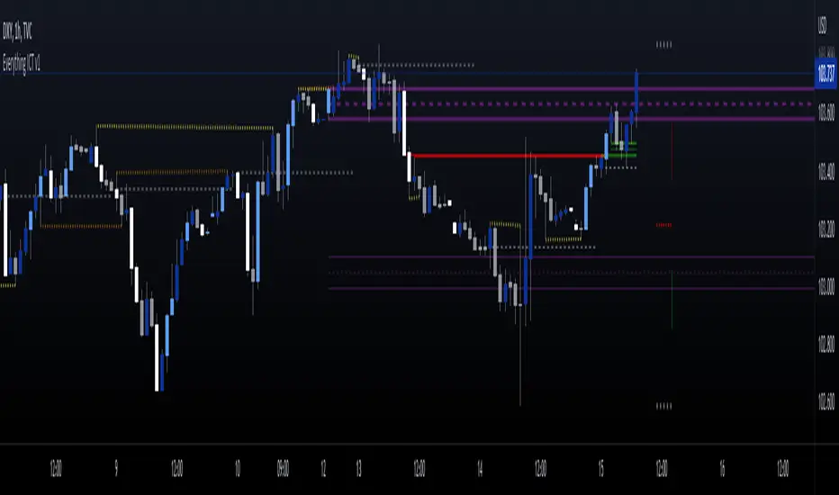 This script presents some of the concepts taught by the ICT. It includes "Fair value gaps", "Double tops and bottoms", "New week opening gaps", "Optimal trade entry" and some other minor things. This is a work in progress and there will be more concepts included in the future.