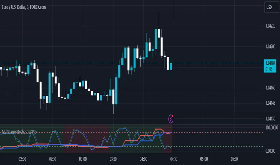 - Flexibility: The ability to individually set the time frame and parameters for each stochastic makes this indicator highly flexible.